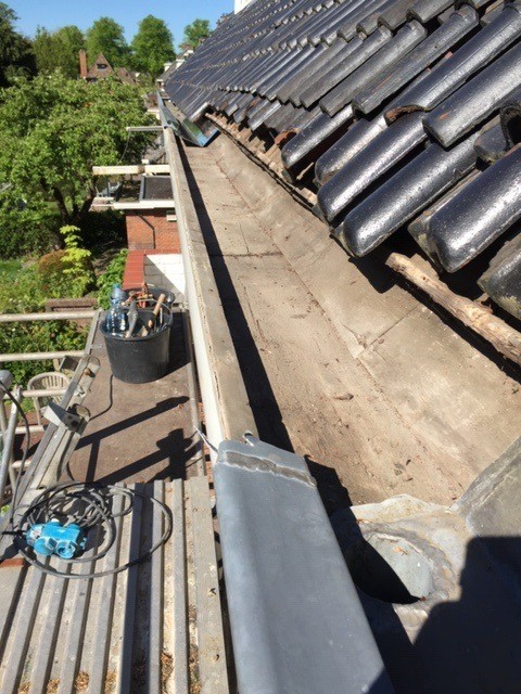 In Naarden hebben wij een oude dakgoot met meerdere lekkages vervangen. Na het verwijderen van de oude dakgoot controleren wij het onderliggende hout op slechte en rotte plekken die kunnen optreden na lekkages of door ouderdom.