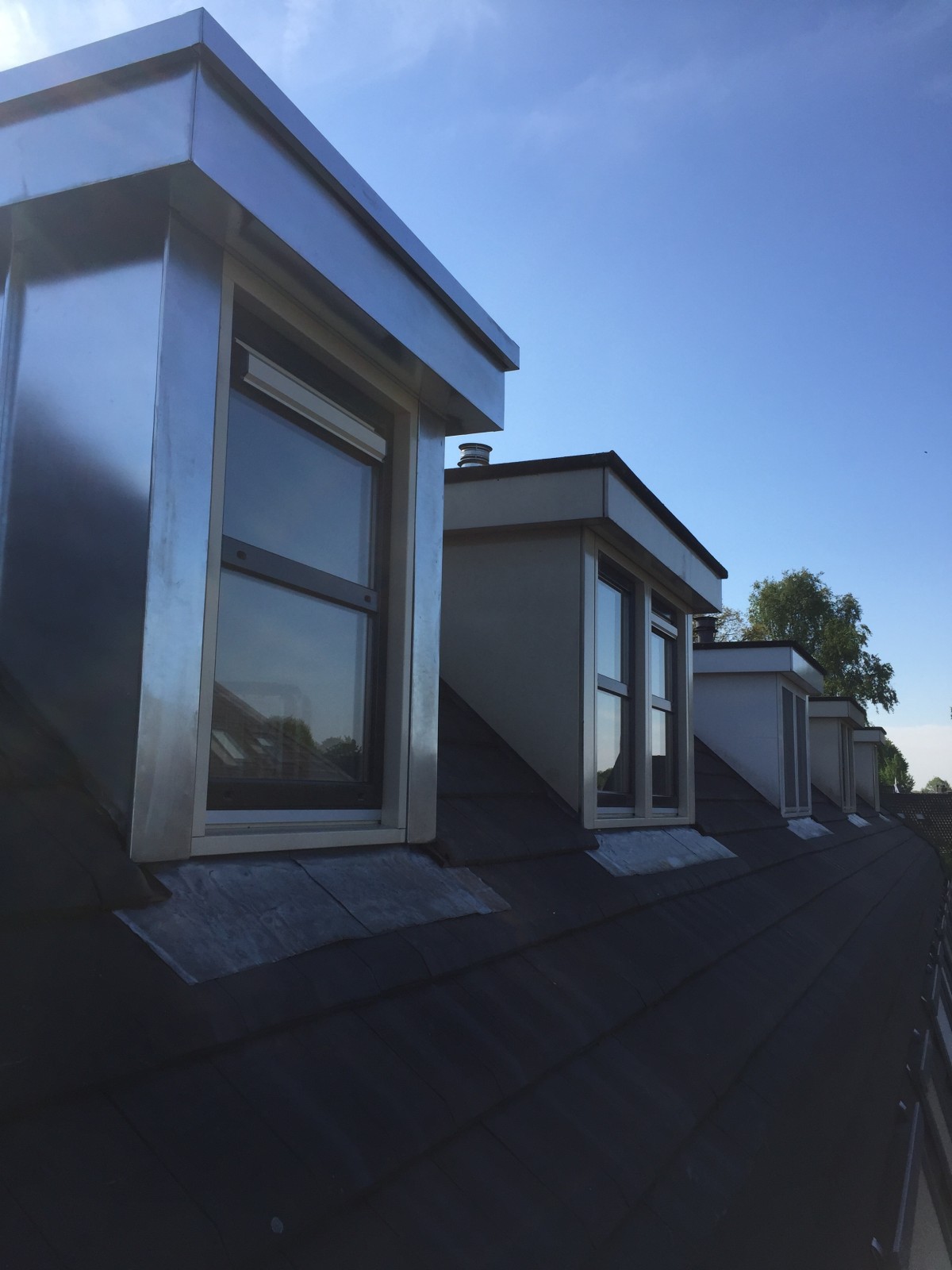 De boeidelen en zijwangen voorzien van zink. Een dakkapel is één van de hoogste en moeilijk toegankelijke plekken van een huis om onderhoud te plegen. De grote oppervlakken hout hebben veel onderhoud nodig zoals schoonmaken en schilderen. Zinkatelier verduurzaamd dakkapellen door de grote delen hout te bekleden met materialen zoals Zink, koper en Aluminium. Een groot voordeel is dat deze materialen onderhoudsvrij zijn en een bijzonder lange levensduur hebben. Verschillende bekledingstechnieken kunnen ook nog eens een eigen karakter geven aan de bestaande situatie.